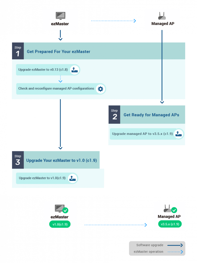 ezMaster è un software che ti consente di gestire la tua rete con praticità e flessibilità. ezMaster è stato aggiornato di recente alla versione 1.0 (c1.9), con importanti miglioramenti immediatamente disponibili per i clienti. Questa pagina ha lo scopo di guidare l’utente attraverso il processo di aggiornamento alla v1.0 di ezMaster con una guida passo-passo.
