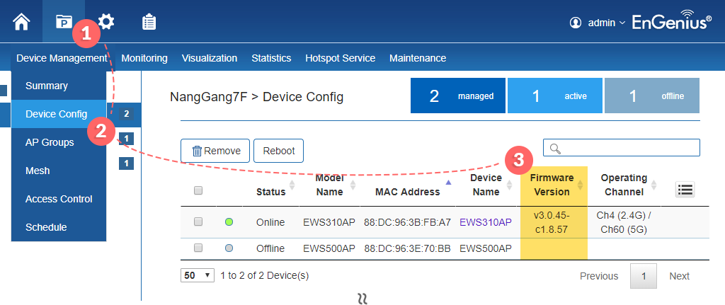Assicurarsi che tutti gli Access Point attualmente gestiti da ezMaster siano aggiornati alla versione firmware v3.5 (c1.9). Se lo hai già fatto, puoi saltare questo passaggio. * E’ possibile saltare questo passaggio se al momento non si dispone di Access Point gestiti.