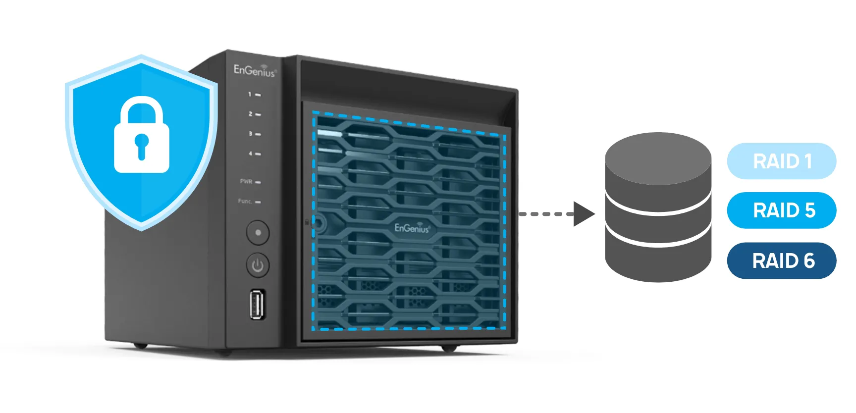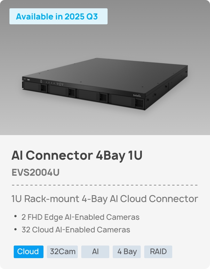 Ensure mission-critical footage protection with enterprise-class RAID 1/5/6 storage architecture. While primarily designed to enhance non-AI cameras, NVS also serves as optional backup storage for EnGenius AI cameras, increasing retention capacity and providing off-site redundancy for disaster recovery.