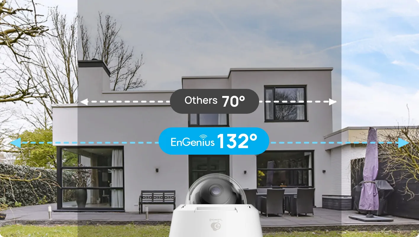 EnGenius AI cameras feature a broad Field of View (FOV) of up to 132° for comprehensive surveillance: