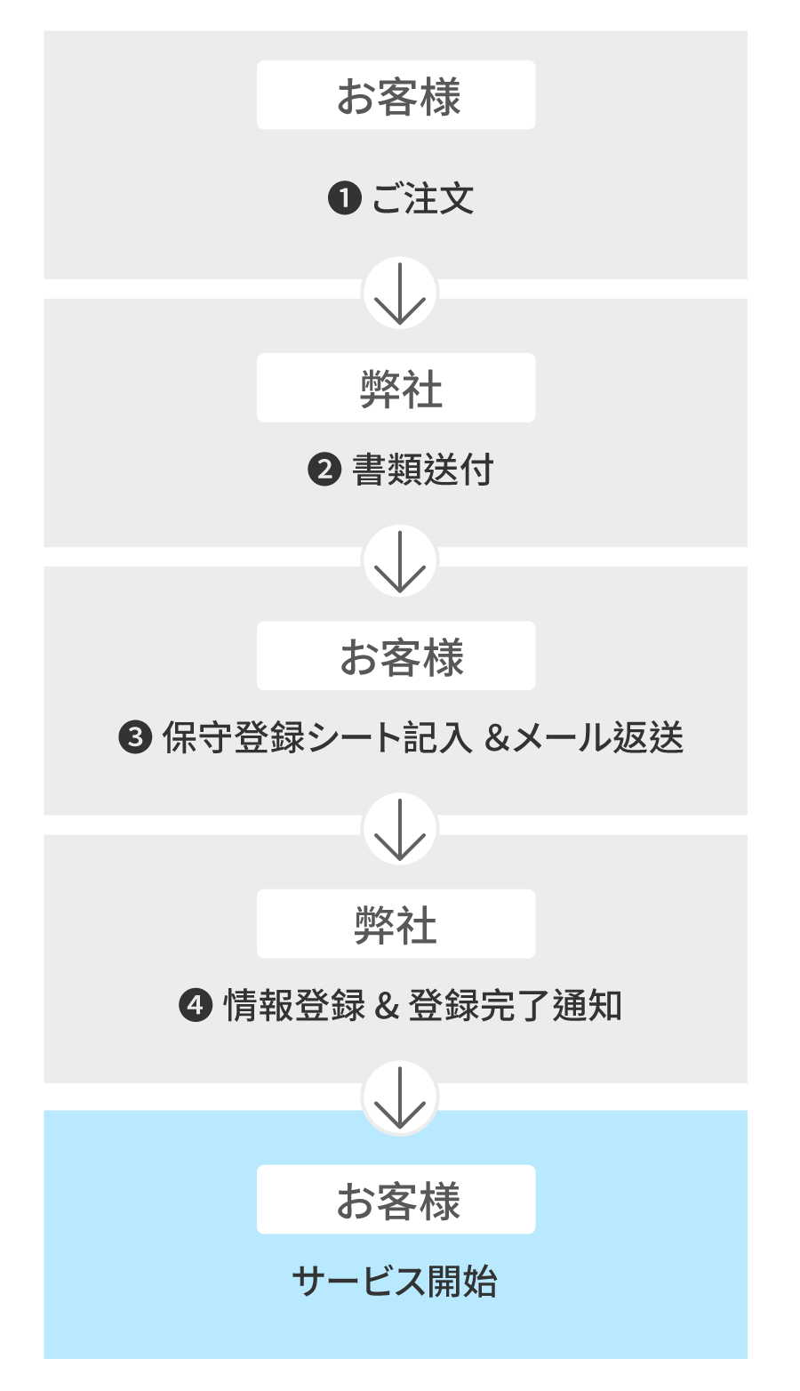 - サービスチケット/説明資料/出荷案内書/保守登録シートがメール送付されます