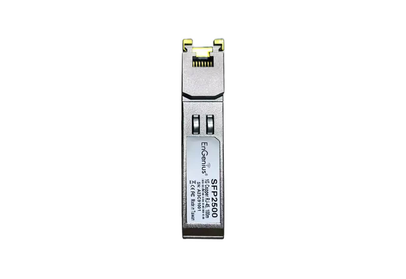 EnGenius SFP2500は、1000BASE-X光信号を1000BASE-Tの電気信号に変換するコンパクトでコスト効率の高いSFPトランシーバーです。最大1.25Gbpsのデータ伝送速度と、Cat5e/Cat6ケーブルを用いた最大100メートルの銅線伝送に対応しています。RJ-45インターフェースを備え、プラグアンドプレイで設定不要の本製品は、短距離通信や異種ネットワーク環境における高速銅線接続を求める用途に最適です。