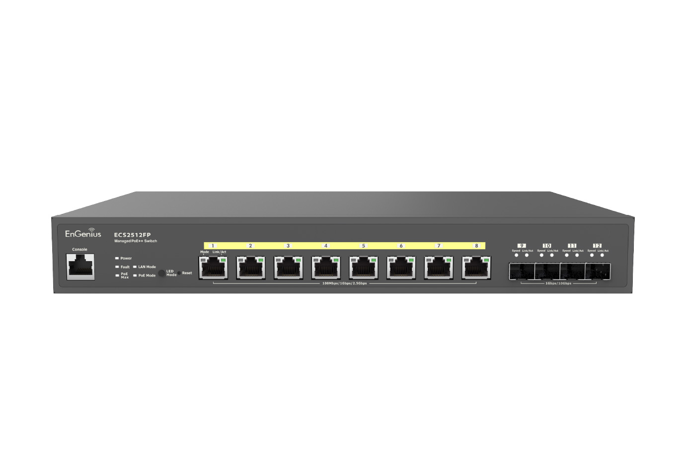 EnGenius 雲端管理型Layer 2+ Multi-Gigabit 2.5Gb 網路交換器 ECS2512FP ,為中小型企業提供易於使用且經濟高效的網路解決方案。憑藉其 8 個 2.5G PoE++ 連接埠以及 240W 總功率預算的 4 個 10G SFP+ 上行連接埠,它可確保頻寬密集型應用的高速數據傳輸。透過零接觸配置和集中式雲端管理,它簡化了網路管理並節省了時間。
